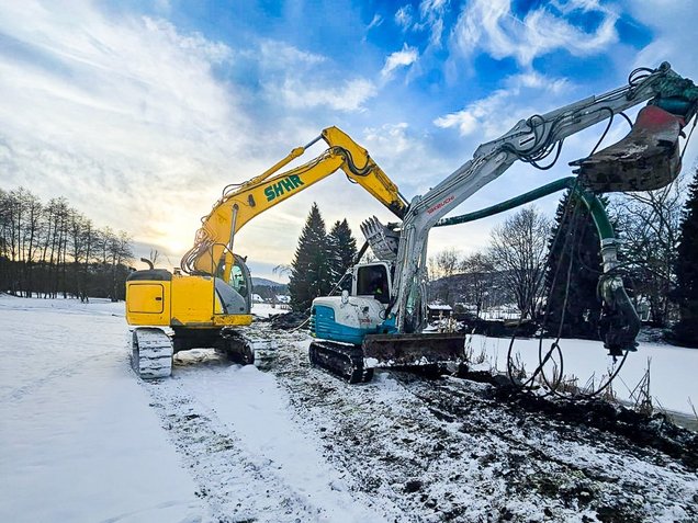 Teichsanierung bei einem Kärntner Golfclub: Durch professionelle Ausbaggerungsarbeiten mit Präzisionsbaggern & Vakuumpumpen wird die ausreichende Wasserversorgung einer Golfanlage langfristig wiederhergestellt.